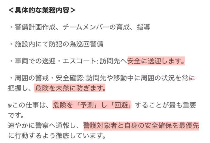 役員専属ボディガードの募集が実際に掲載され、「未経験歓迎」「格闘技・武道経験者歓迎」と明記されていた事実は消せない。通常は警備会社とBtoB契約を結ぶはずの役員警護を、なぜ一般公募で済ませたのか。掲載後に慌てて削除したという流れそのものが、社内外に「重大なリスクを抱えている」と受け取られる材料になっている。社員やオーナーが不安を抱くのは当然であり、削除は問題の解消ではなく、疑念の拡大にしかならない。
