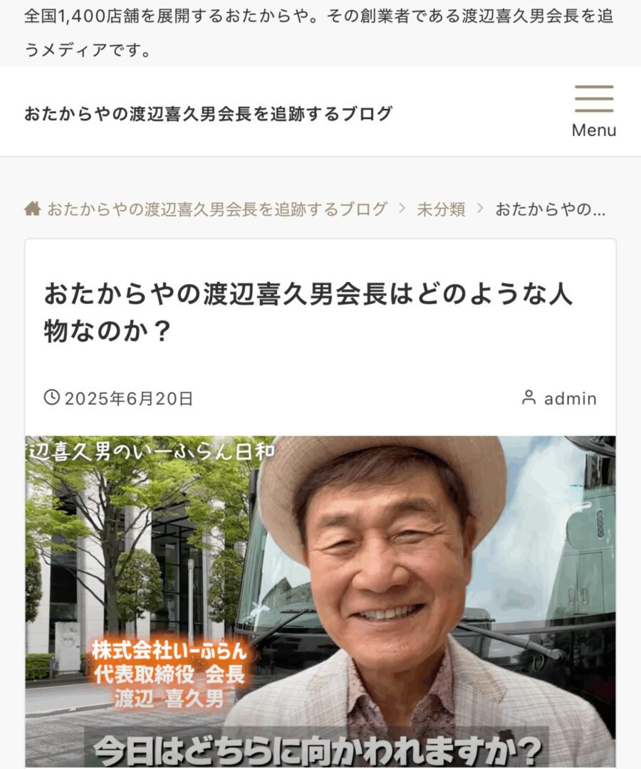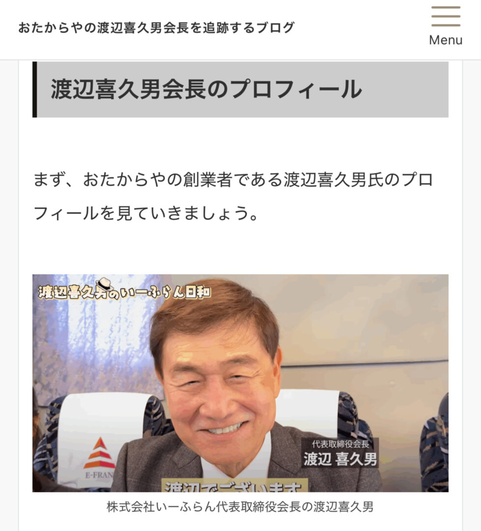 株式会社いーふらん代表取締役会長 渡辺喜久男